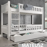 Łóżko piętrowe 2 - 3-osobowe z szufladą - leżyskiem lub szufladami w opcji MATEUSZ - lakier bezbarwny
